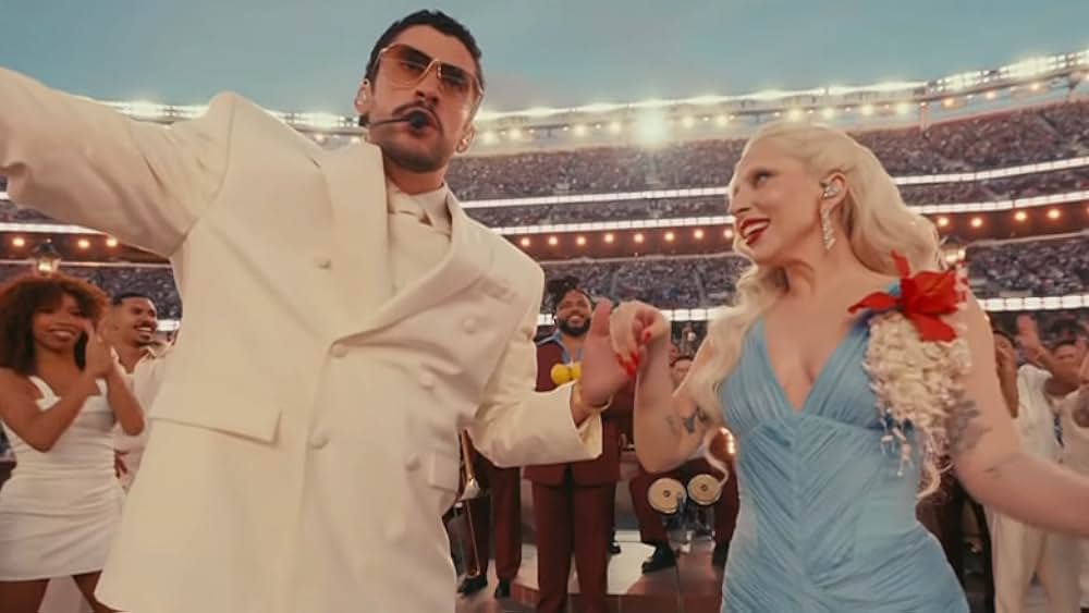 A surprise duet with Lady Gaga created a cross-genre moment, blending pop theatrics with Bad Bunny’s Spanish‑language verses. That pairing amplified mainstream appeal and created a headline-making visual contrast.